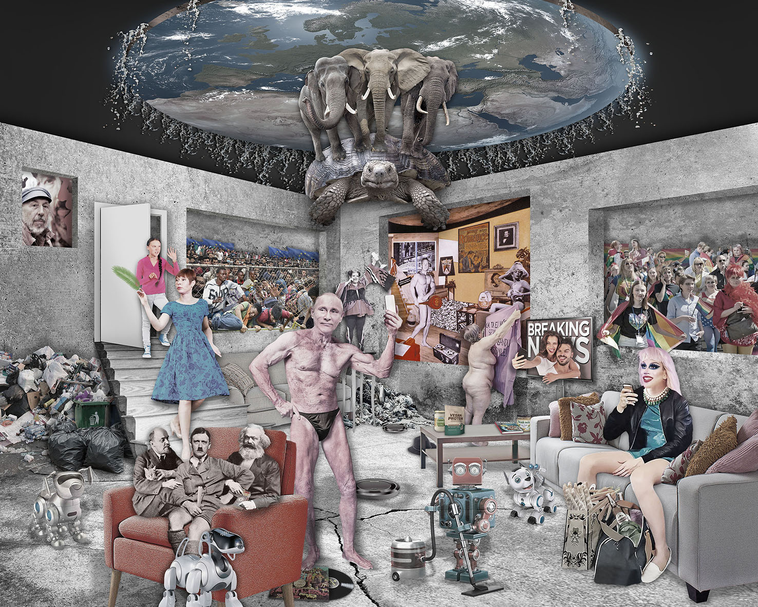 Silver Vahtre privaatne ruum ehk oma tuba pole – nagu eeldada võiks – tänapäeval väliste ärritajate eest kaitstud. Sinna tungivad nii poliitikute, kolleegide, näitlejate, arhitektide kui teiste erialade hääled, mineviku kurjad varjud ja tänapäeva populistlikud oraaklid, moodustades kakofoonilise, aga ka ometi üksteise hääli täiendava ja võimendava kummalise koosluse. Nagu tõejärgsele ajale kohane, pole ammu enam kindel, mis on hea, mis halb, mis globaalne, mis lokaalne. Ühel Vahtre figuuriderikkal kollaažil on koos Vladimir Lenin, Adolf Hitler, Karl Marx, Kersti Kaljulaid, Vladimir Putin, Greta Thunberg, robotkoer, tagaplaanil Hamiltoni kuulsa kollaaži repro. Teisal mängivad liivakastis ümber hiigelimiku liliputi-mõõdus Eesti poliitikud ja poliitikakommentaatorid, nende seas Kaja Kallas, Ahto Lobjakas, Kristina Kallas, Jevgeni Ossinovski, taustal Jürgen Ligi ja naiseriietes Mikk Pärnits. Järeldused, nagu tänapäeval öeldakse, võib vaataja ise teha.